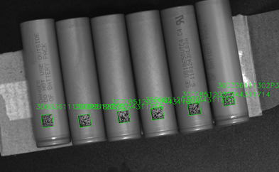 圆柱电池中间有高光,反光比较严重,且二维码在圆柱上有轻微变形,增加项目难度。